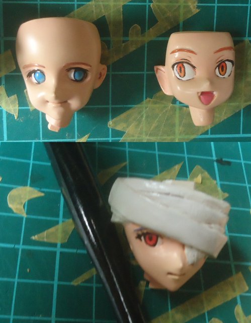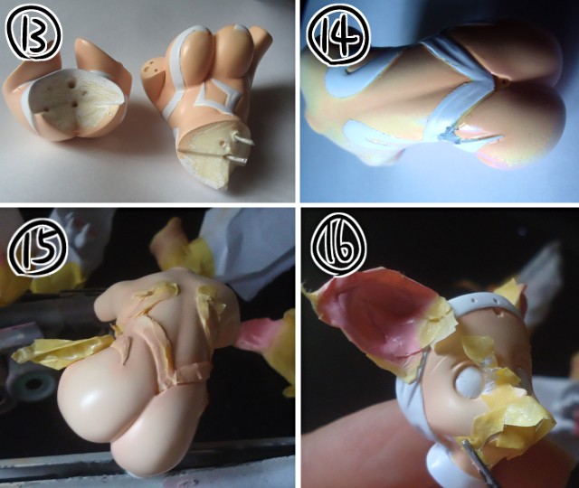 3:段差をパテ埋めでけずり合わせ、部分的に別パーツの髪は金属線