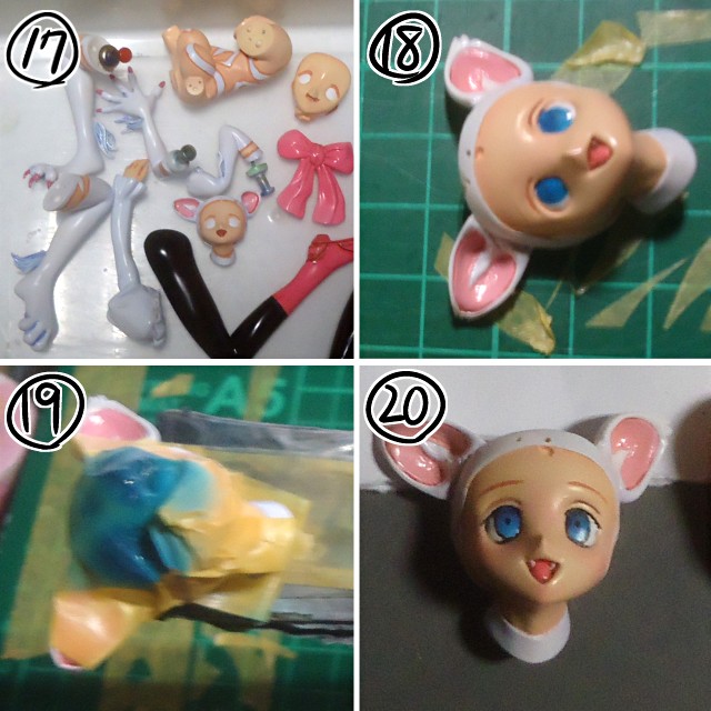 16:耳、白目部分もマスク塗装で。塗膜段差はエナメル溶剤の綿棒