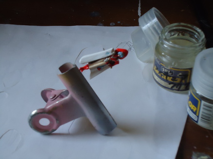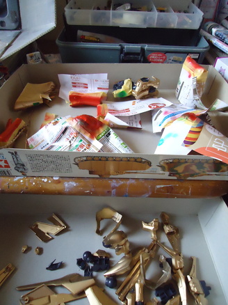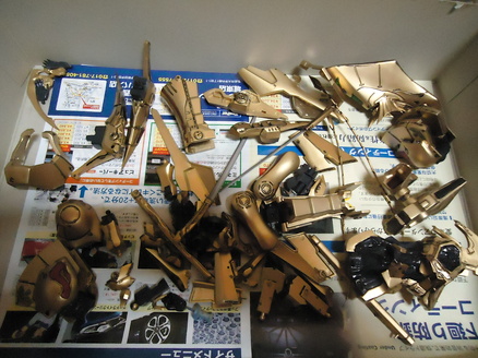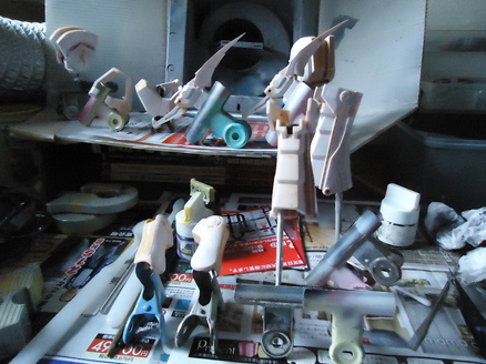 ボークスが1998年ごろに出した、プラのKOGのバスター砲なし版。 ネットで「作りづらい」とかなり見ますが、マジでそうです(笑) 胴体だけなんか1/144より小さいような、スケール違いなパーツで どうしようか悩みました。自分のもってるKOGキットを動員して 合体すり合わせで作りました。顔、胴体全部、両手、足のアイゼン 4本はキットのパーツ使ってません。胴体はレジンのムクになって 重くなりました。 製作途中。おまけでついてた、カレンの2.8cmレジンフィギュアも。 グラデーションとかしないでいい分、早くできました。 立体視です。なんか忘れたなと思ったら腰の剣をはずしたまま撮ってましたw