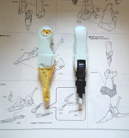 手のひらとランチャーに軸打ちして、完全固定しました。これで3月号ポーズに近づけ