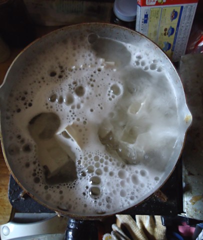 まず煮ます ソフビパーツを煮ます。変形はこれで直ります。同時に洗剤も