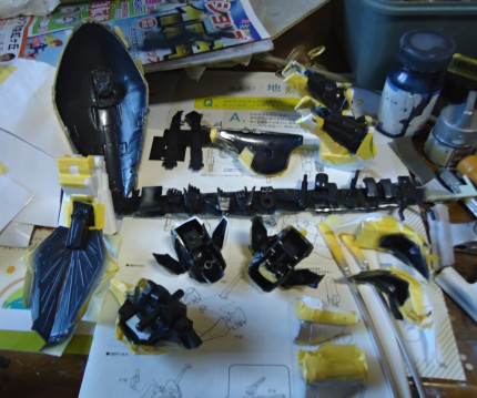 本体色塗装後、マスキング。パーツ数が膨大ですが その がんばりましょう!(・・・。)