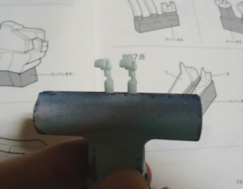 接着します。ランナー状態で持つと、段差をけずりやすいし