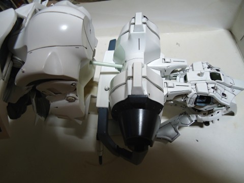 合わせ目や段差を修正します。足のももですが、キットの分割だと、ひざ関節が