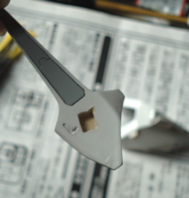 キットのままの左腕、アキュートブロック。アキュート(意味は鋭角)