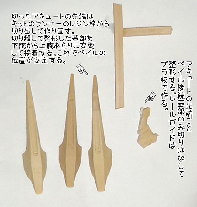 このようにアーム基部をアキュートごと切り離して別パーツにして、