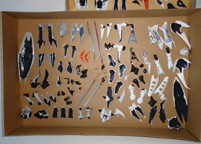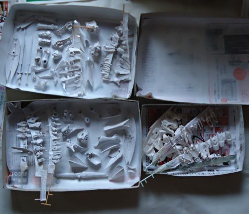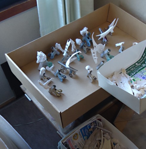 サーフェイサー吹きも3機、しかも可動ロボットキットだと膨大なパーツ数に