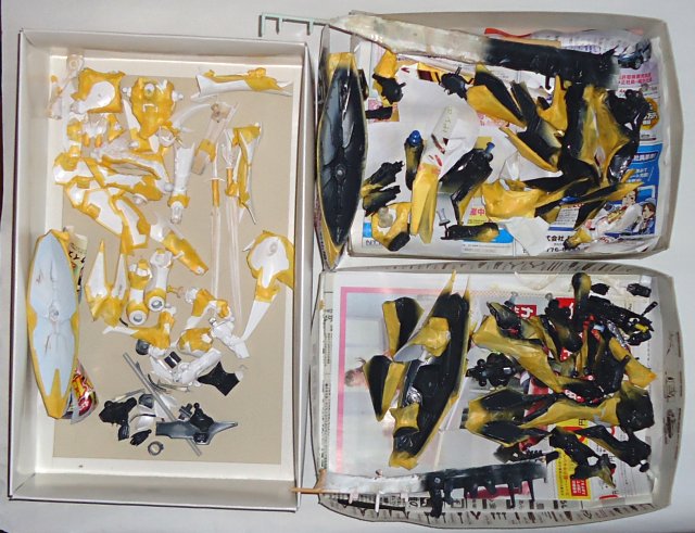 右上のカラは乾燥したSR2のパーツを右下に移した所。極小パーツ紛失に注意。