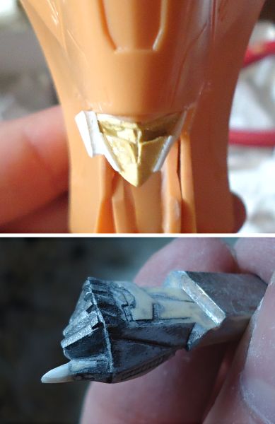 ATの親指で、レジン片から作り直し。上の顔は別に作っている