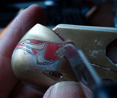 KOG・ATの肩のモールド。繊細な彫刻をエングレーバーなどで彫りなおし