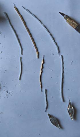 0.5ミリ金属線を穴あけてつなげます。非常に細いパーツに