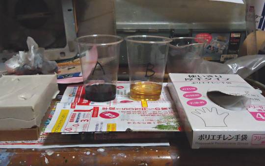 後に溶剤でスミ落としする時に塗膜が薄くてラッカー塗装下地まで落ちて