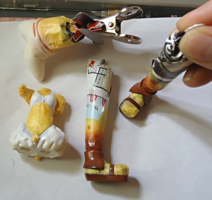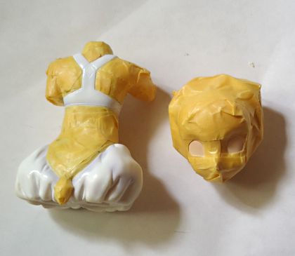 第2次マスク。服の白部分をマスク、足はブーツのこげ茶部分をマスク、塗装。