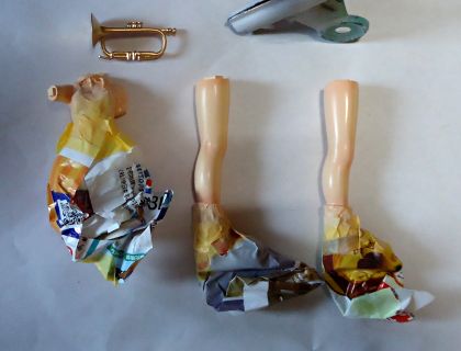 おかしなはみ出しがないかよく見る。小型のリボンが頭部と腰で