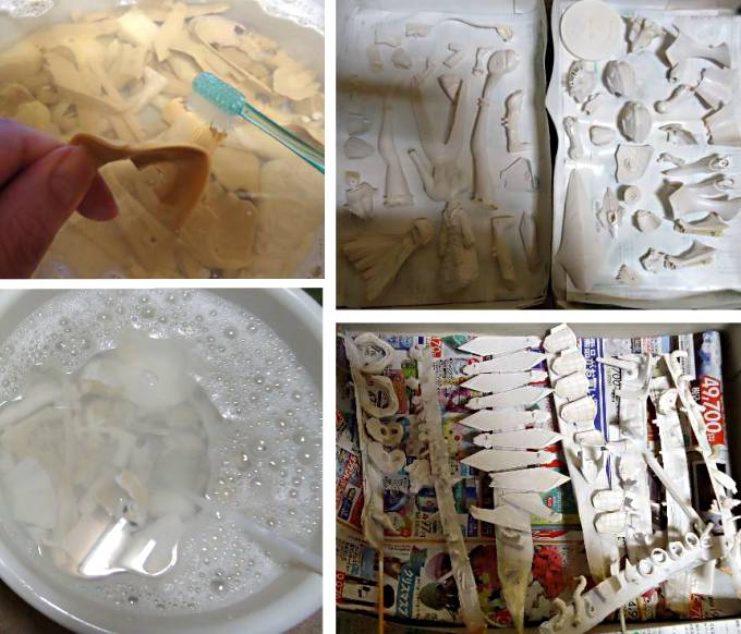 1・しっかり乾燥させたら、分割を紙やすりで整形します。けずれてレジンの