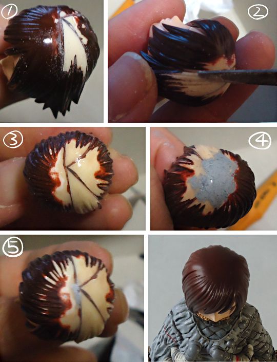 やすりまでかけて処理が終わった写真。完成した頭部を上から見ると