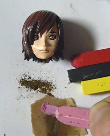 パステルをけずって描き込みます。後のつや消しクリアーで