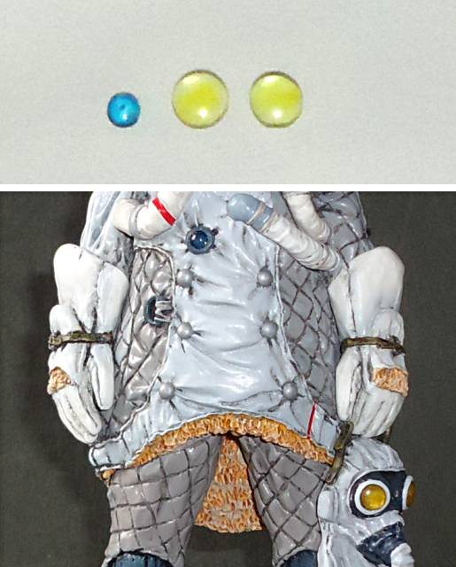 目を水性塗料のクリアで光沢を入れ、作ったクリアパーツを接着して完成です。