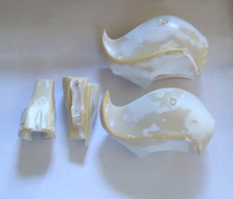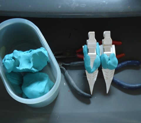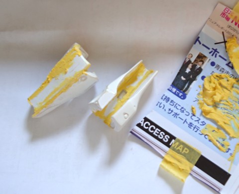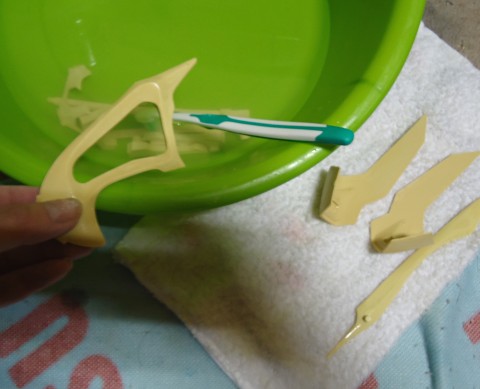 乾いたらパーツのバリを切り出します。お湯かドライヤーの温風で