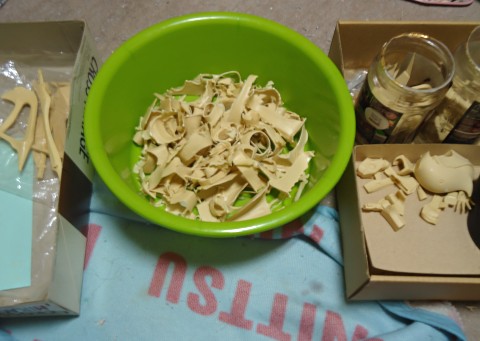 整形して、けずった瞬着やビニールやレジンの粉くずだらけの