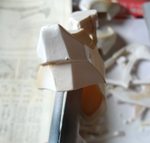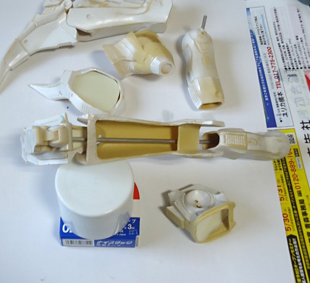 部分の接着、整形です。このキット、左腕装甲がなぜか