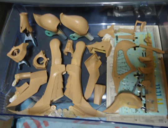 結局、油がしみついたままじゃん、と。古いキットなんでがっつり磨きます。