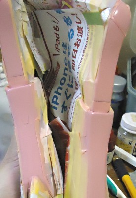 このように下地にピンクを塗装しておくと、赤の塗装がキレイに