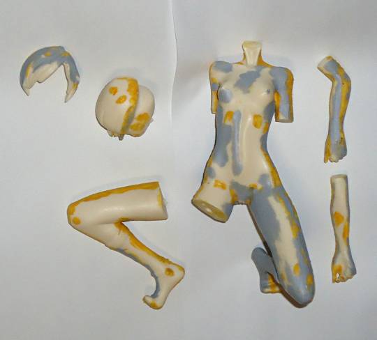 白+青で薄青をカゲに吹き、乾燥させて全身くるんだマスクをはがす。