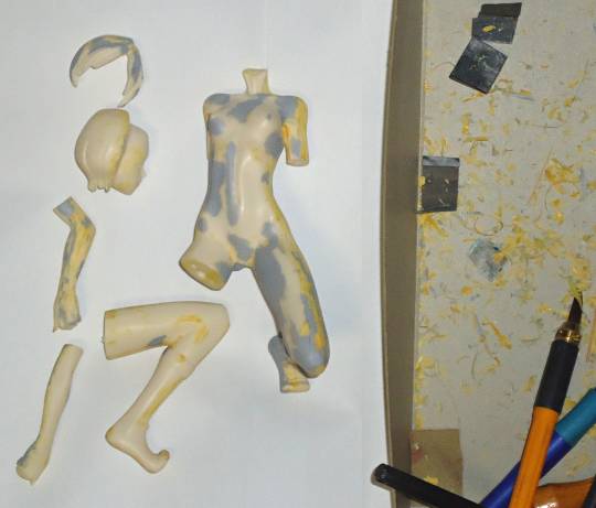 2液、瞬着で接着、整形。こういう分割のキットの場合、いかに手足の分割線を