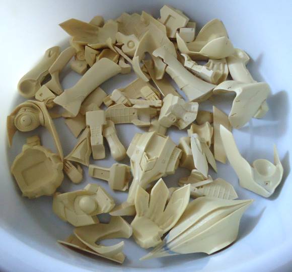 1:何度も見る光景ですが剥離剤の油分除去です。ガレージキットは