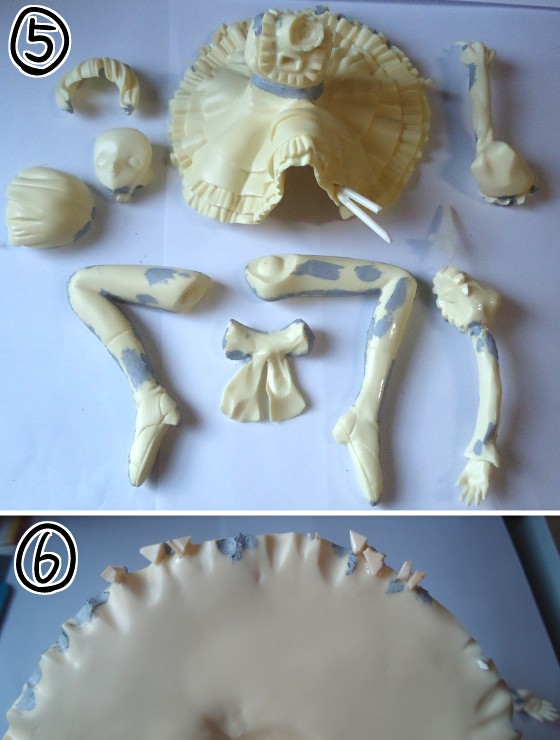 6:このキットの難関、フリルです。2重フリルなんでほんと波打つ形状に