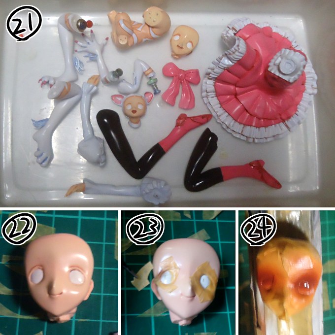 22~24:目は白目をマスク塗装した後に目ん玉もマスクして
